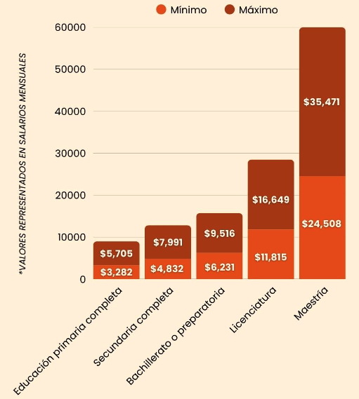 - Este es el punto de quiebre más notable. Obtener un título profesional prácticamente duplica el ingreso superior. El rango salarial se dispara a entre $11,815 y $16,649 pesos, posicionando a los universitarios en una categoría con mayor estabilidad económica.
